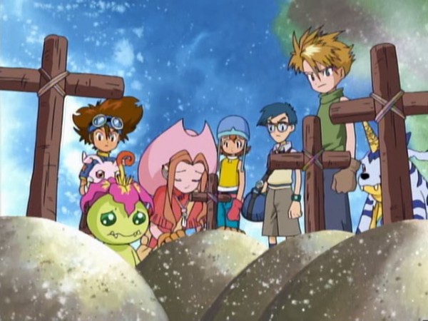 Although the storyline is quite formulaic; find Digimon, fight people, drift apart, unite, fight people etc, it still maintains enough depth and slight plot twists to remain engaging. Perhaps the main thing that got me was the open talking about death, the children even make graves for departed Digimon, also the mention of regeneration which pertains to an afterlife. I imagine the American version had it's scissors trimming away at that one.